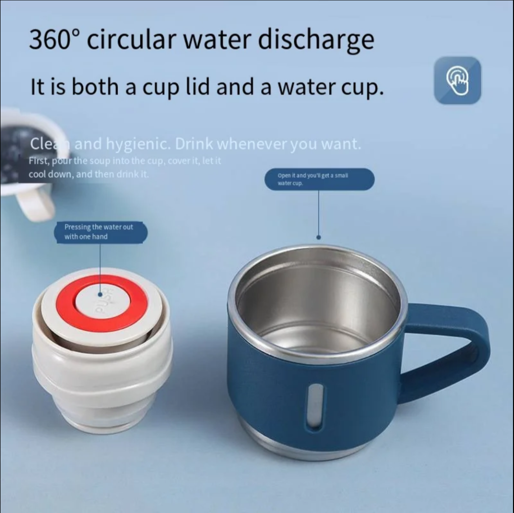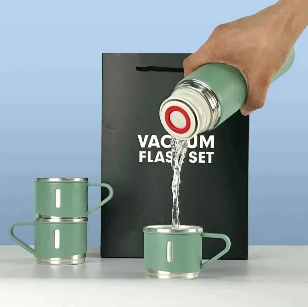 This Green Coloured Stainless Steel Thermos Flask Gift Set includes a 0.5L travel bottle with 2 cups, suitable for both hot and cold beverages. The flask is double-walled and insulated, keeping drinks hot for up to 12 hours and cold for 12 hours. It features a twist lid and spill-proof design, making it ideal for on-the-go use during activities like office work, travel, hiking, and more. The sleek Gift Set Comes in black, pink, blue, grey, silver, or green colour options add a stylish touch to this practical and durable Thermos flask set, perfect for both adults and children alike.
